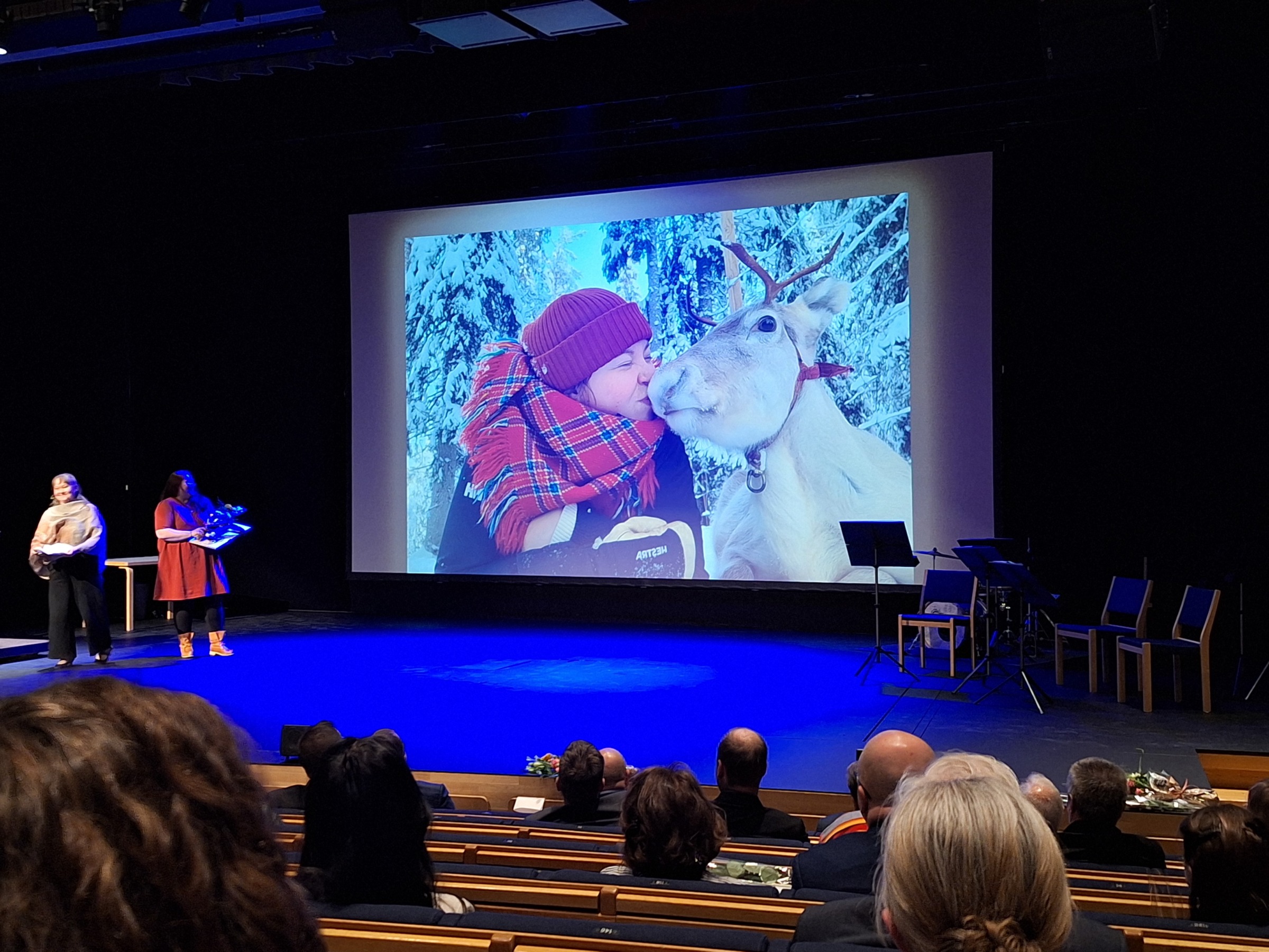 Väistyvä Paliskuntain yhdistyksen toiminnanjohtaja Anne Ollila vastaanotti suuret suosionosoitukset yleisöltä kiitoksena pitkästä ja onnistuneesta urastaan Paliskuntain yhdistyksessä. Uudeksi toiminnanjohtajaksi valittu Hanna Nurmi on Koillis-Lapin ympäristöterveydenhuollon ympäristöterveysjohtaja ja Savukosken sekä Pelkosenniemen kunnaneläinlääkäri. Hän on myös poroperheen äiti.