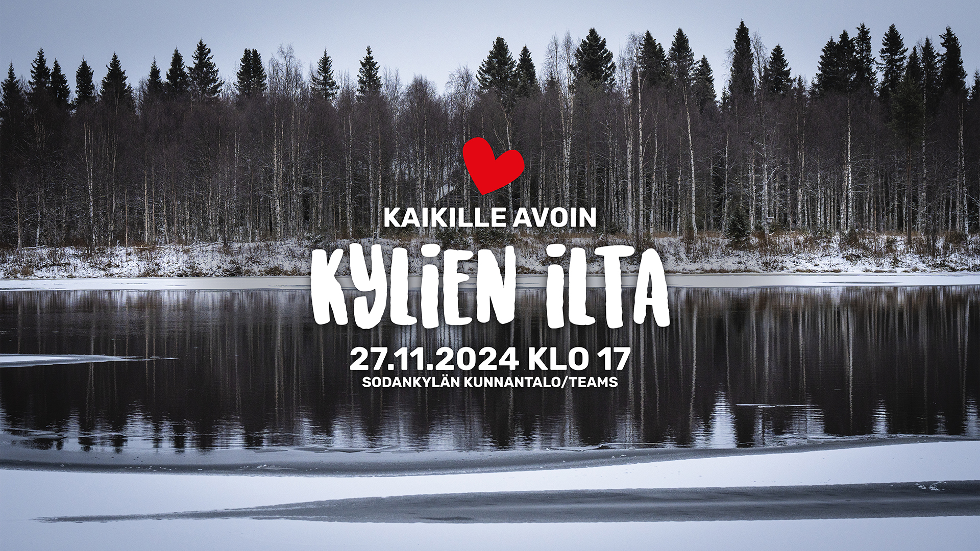 Tervetuloa kaikille avoimeen kylien iltaan ke 27.11.2024 klo 17. Puhetta mm. uusista yhteistyöhankkeista, paikallisesta jätehuollosta ja kylien ajankohtaisista asioista. Tule paikan päälle kunnantalolle tai osallistu etänä!