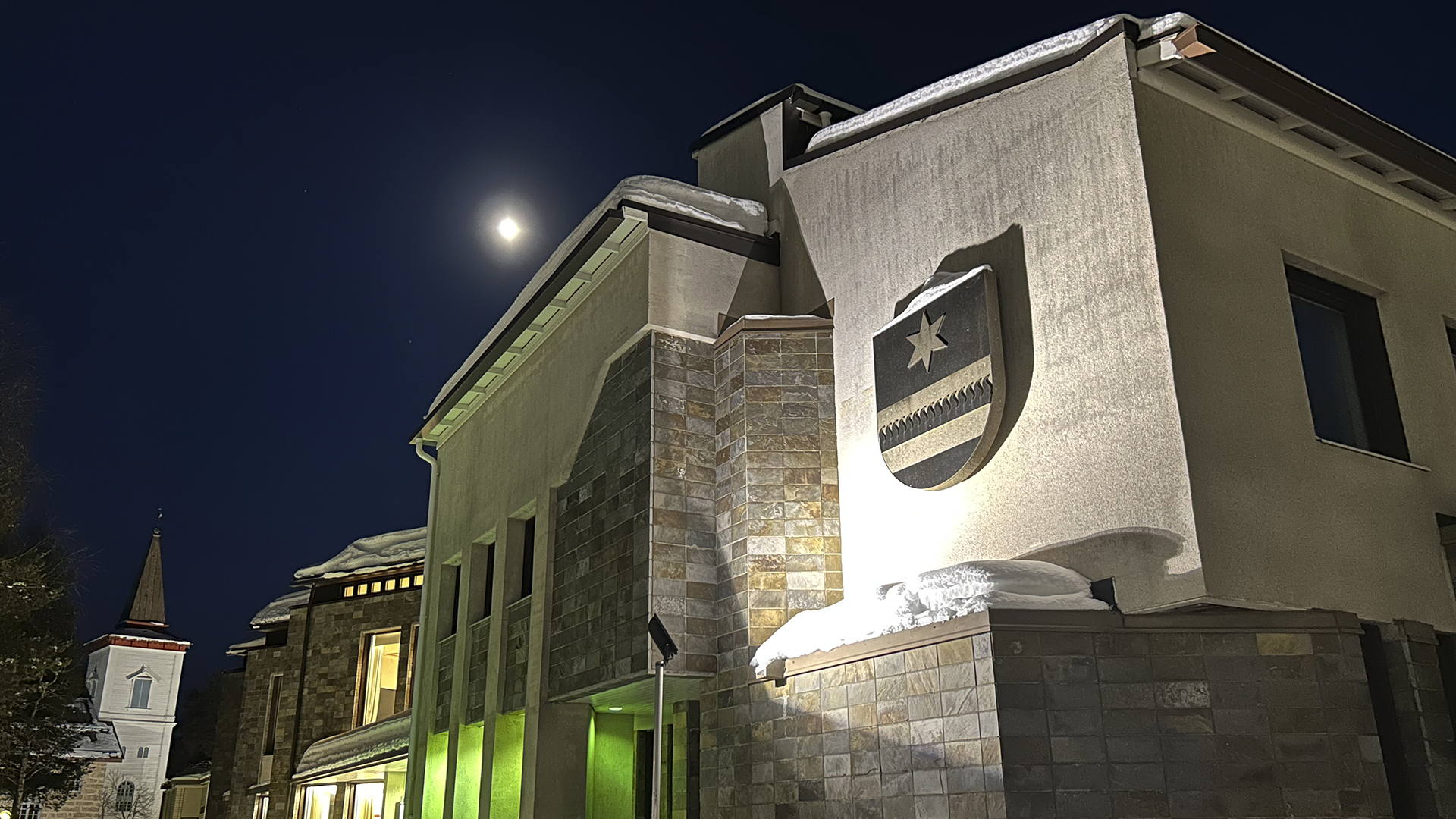 Sodankylän kunnantalo pimenee lauantai-iltana Earth Hourin kunniaksi. (Kuva: Stéphanie Lefrère)