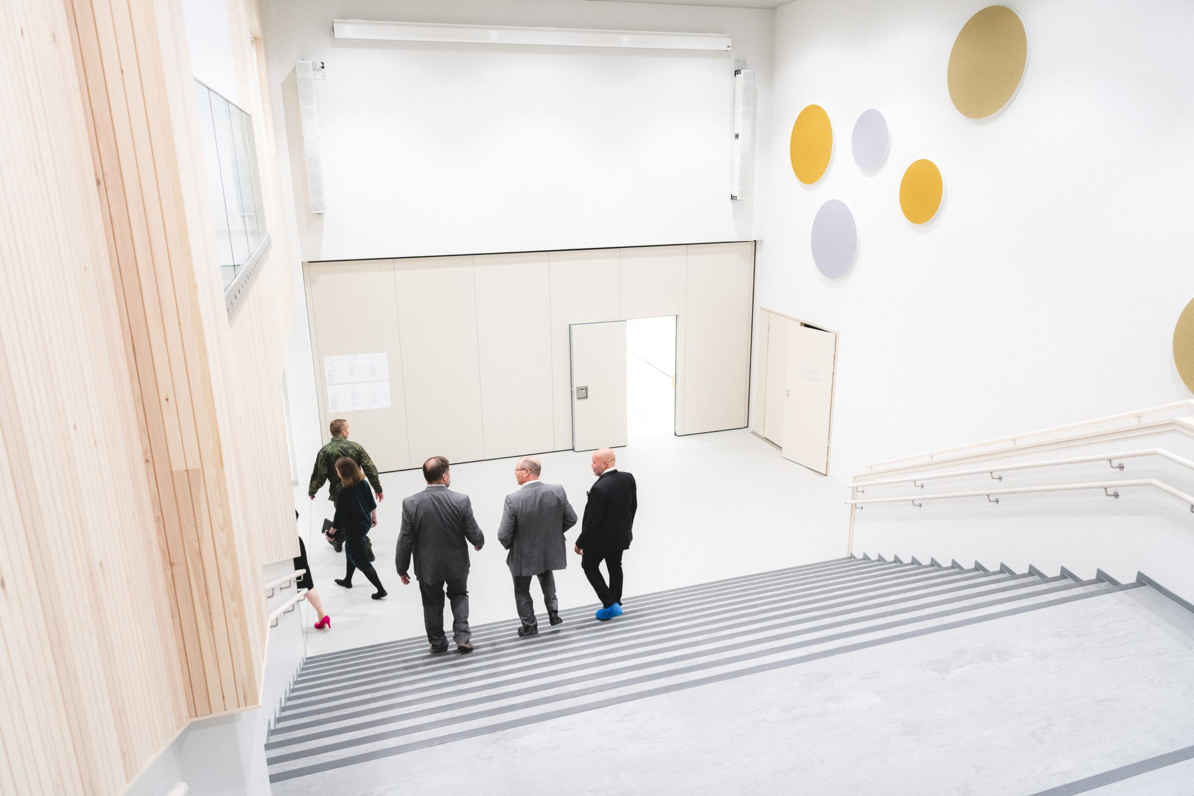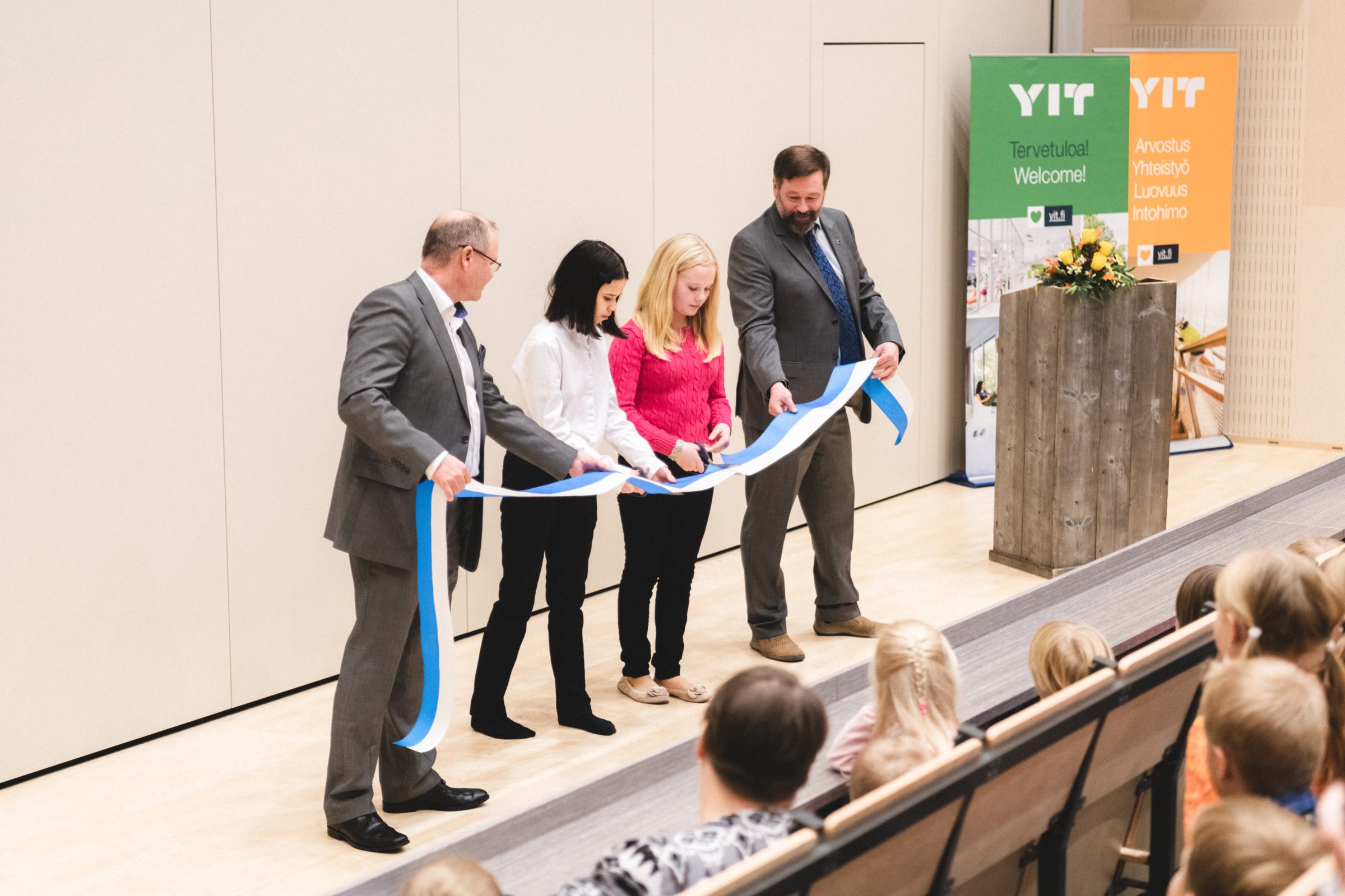 Koulun auditoriossa pidetyissä vihkiäisissä kuultiin kunnanjohtajan ja opetusministerin puheet. Estradille nousivat eskarilaiset ja huilistit.