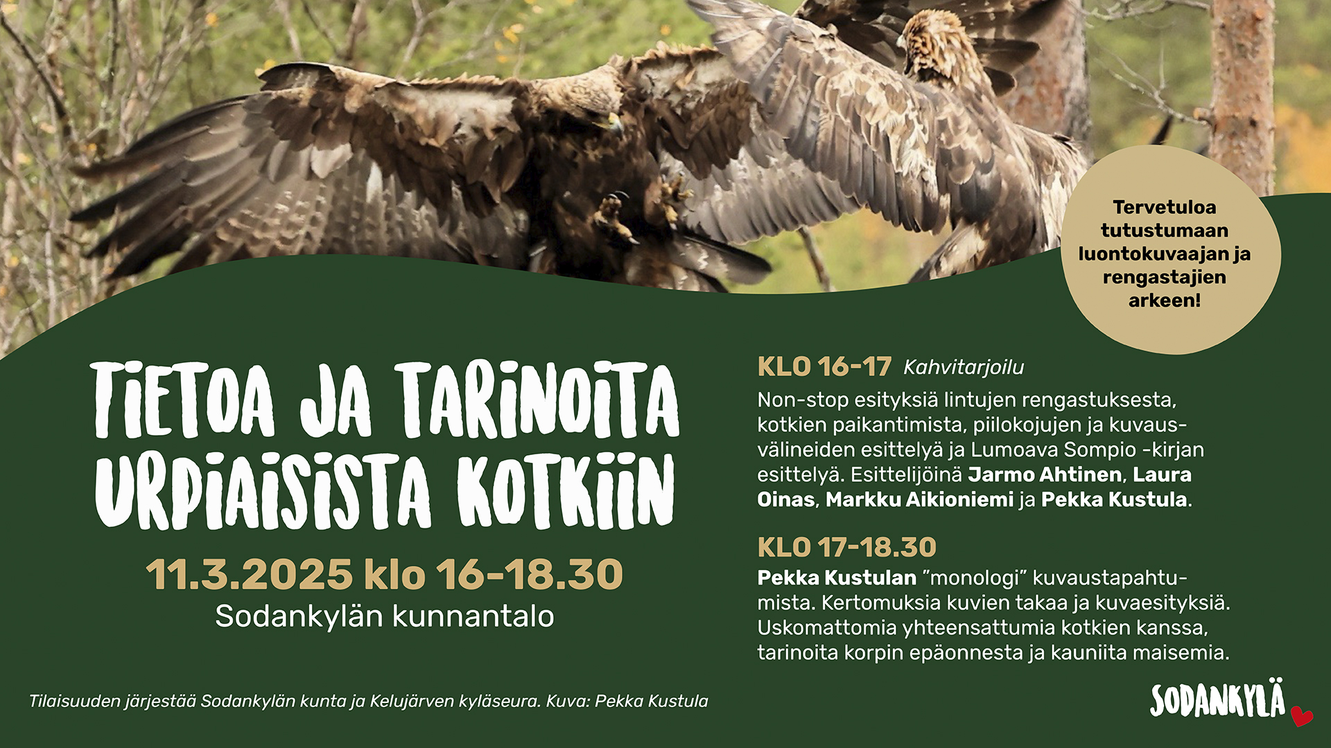Tietoa ja tarinoita urpiaisista kotkiin tiistaina 11.3. Sodankylän kunnantalolla